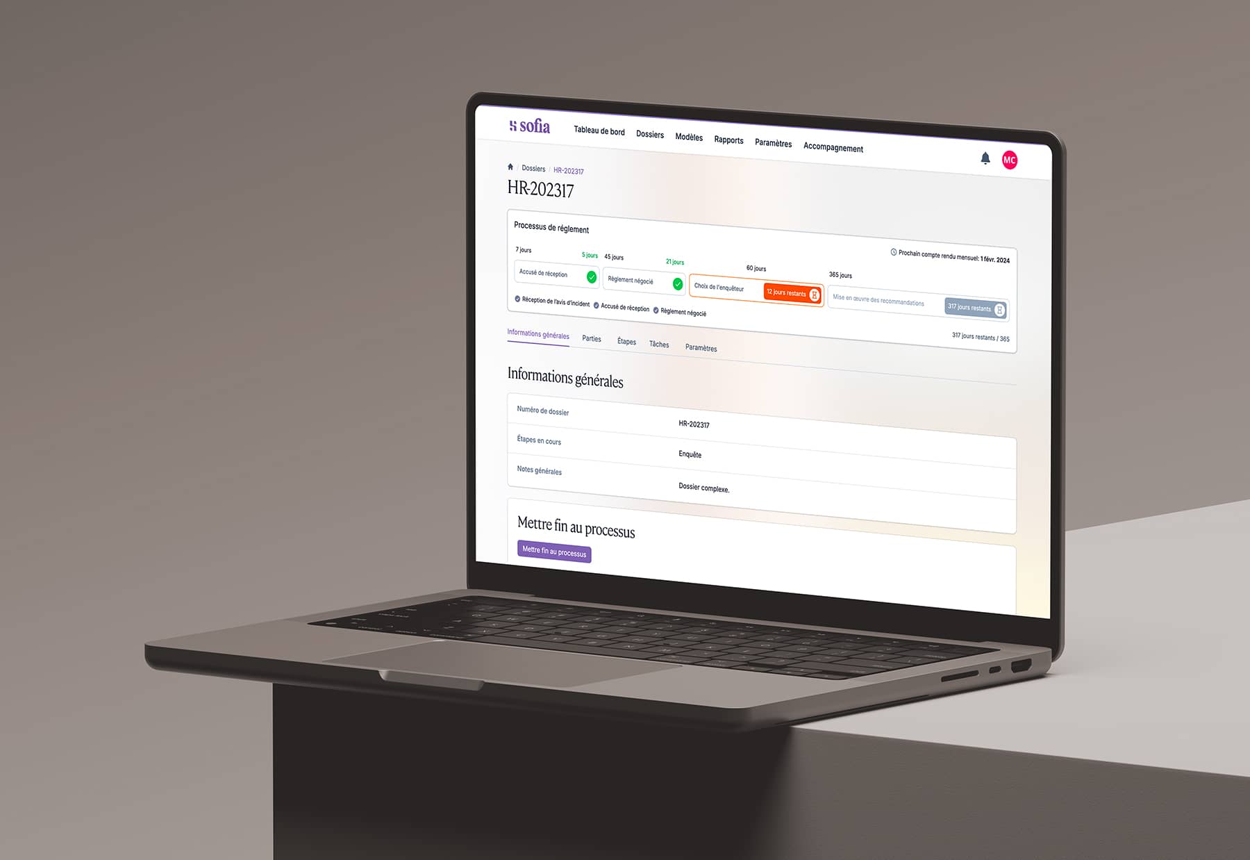 Sofia simplifie et optimise l’ensemble du processus de règlement. Elle fournit une plateforme centralisée pour organiser, documenter et suivre tous les aspects du processus.